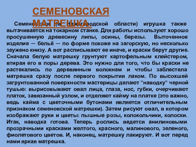 СЕМЕНОВСКАЯ МАТРЕШКА.