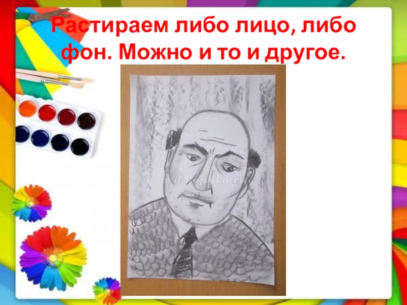 Слайд 11Растираем либо лицо, либо фон. Можно и то и другое.