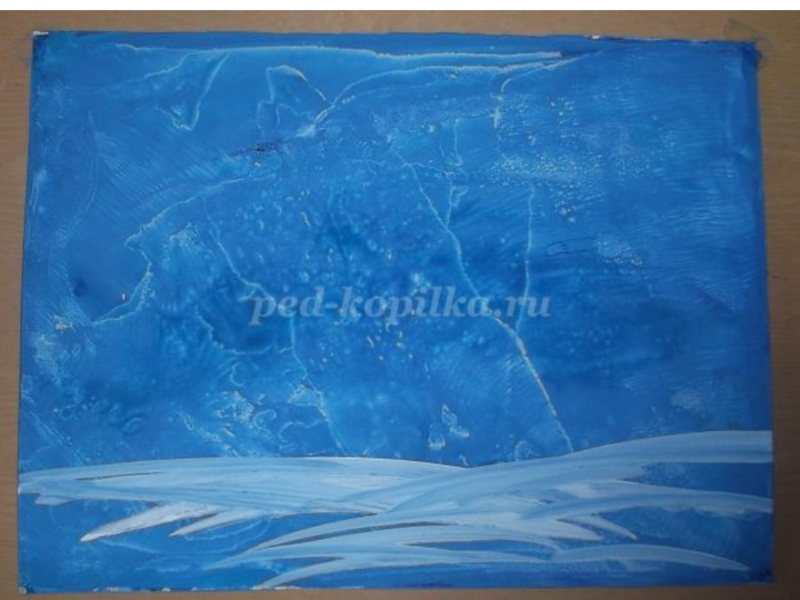 Цель: Научить воспитанников старших групп работе с ограниченной палитрой, познакомить с понятием «гризайль»Задачи:1 Обучение воспитанников владению круглыми щетинными кистями разного размера при изображении деревьев.2 Развитие любознательности. Знакомство с понятием инея.3 Воспитание любви к родной природе.Материалы:Ватман, гуашь
