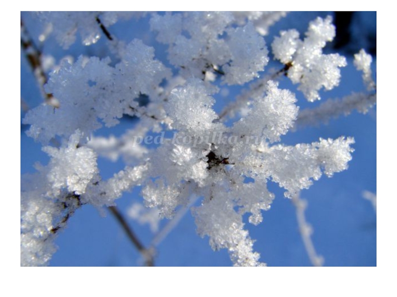 Интернет расширяет понятие: «В морозные зимние ночи, когда температура воздуха падает ниже точки замерзания воды (0°C), капельки воды, испаряющиеся с поверхности почвы, травы и деревьев, превращаются в крохотные кристаллики льда, и землю окутывает серебристо-сверкающее покрывало, которое ложится и на кустарники, и на ветви деревьев, и на электропровода».