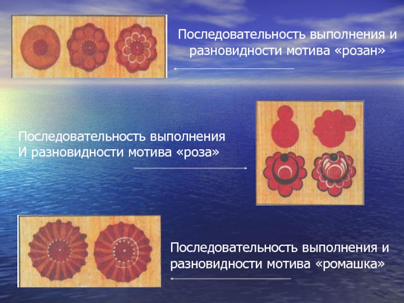 Последовательность выполнения и разновидности мотива «розан»Последовательность выполнения И разновидности мотива «роза»Последовательность выполнения и разновидности мотива «ромашка»
