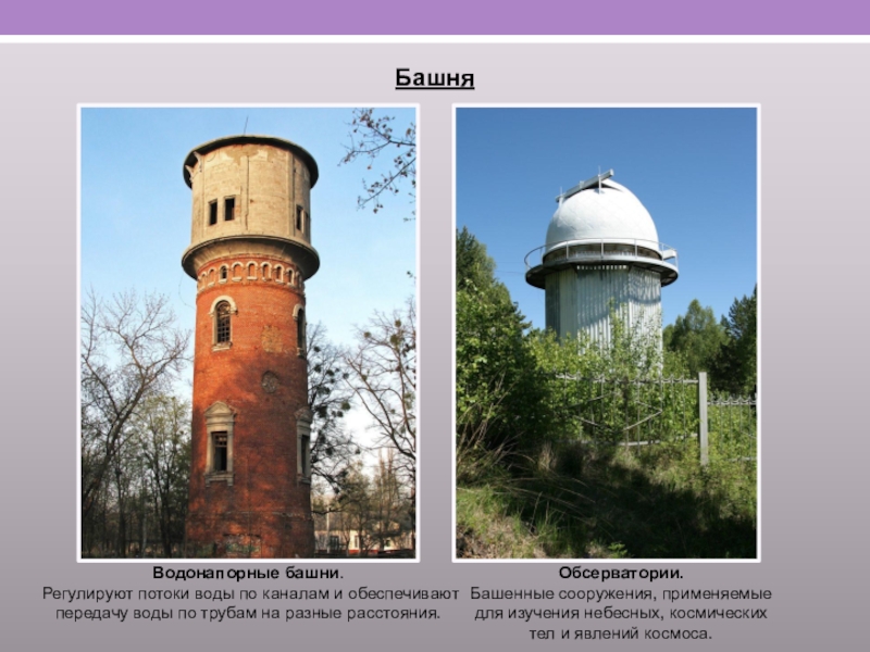 Башенные сооружения, применяемые для изучения небесных, космических тел и явлений космоса.