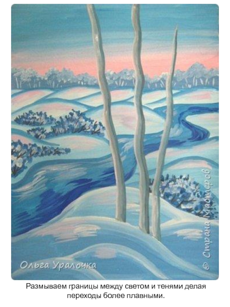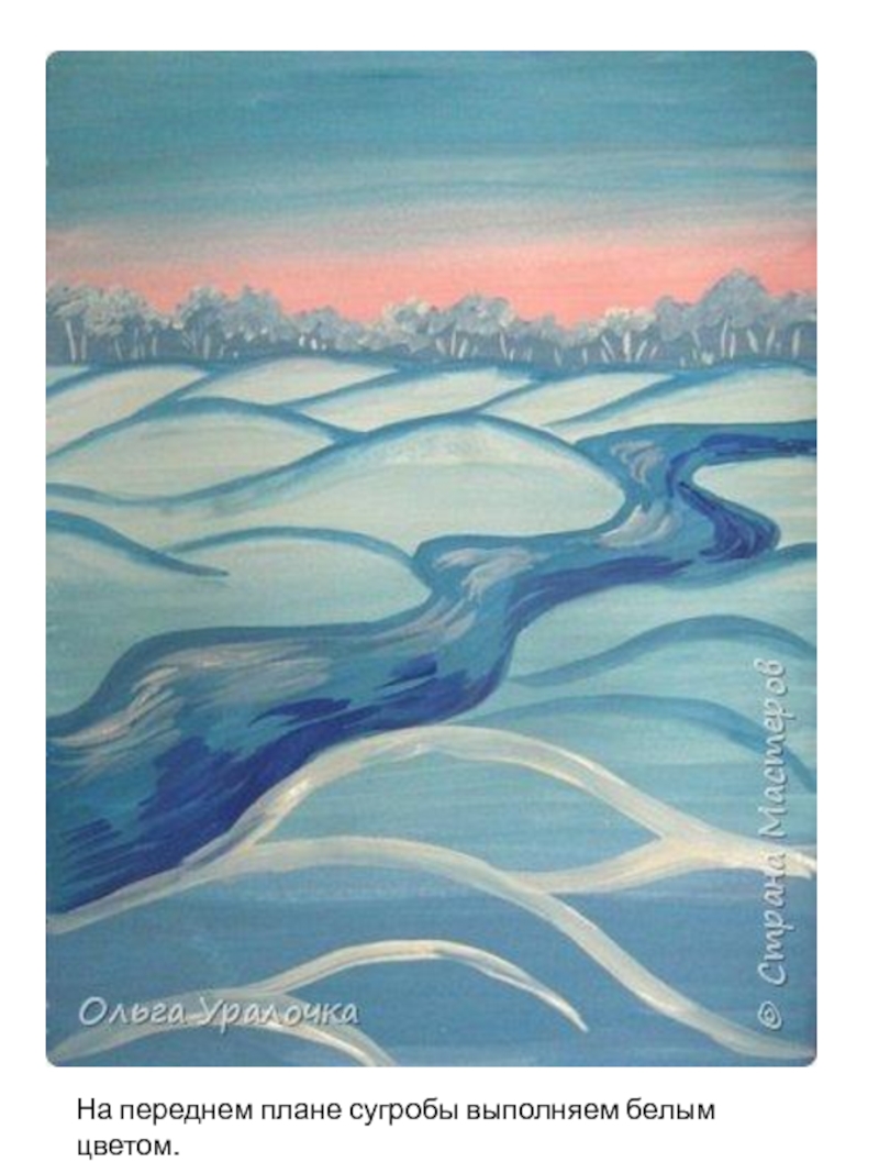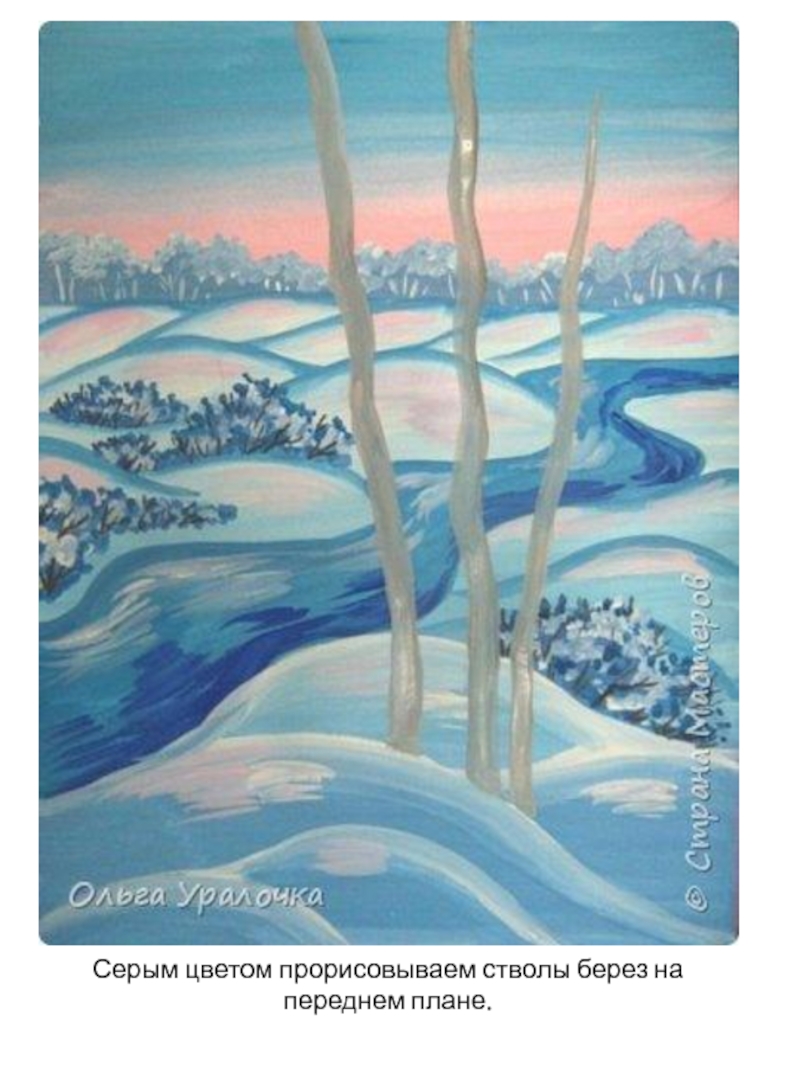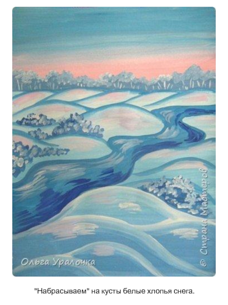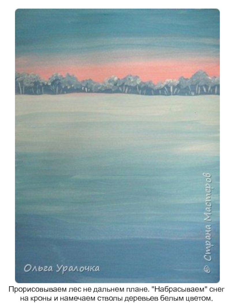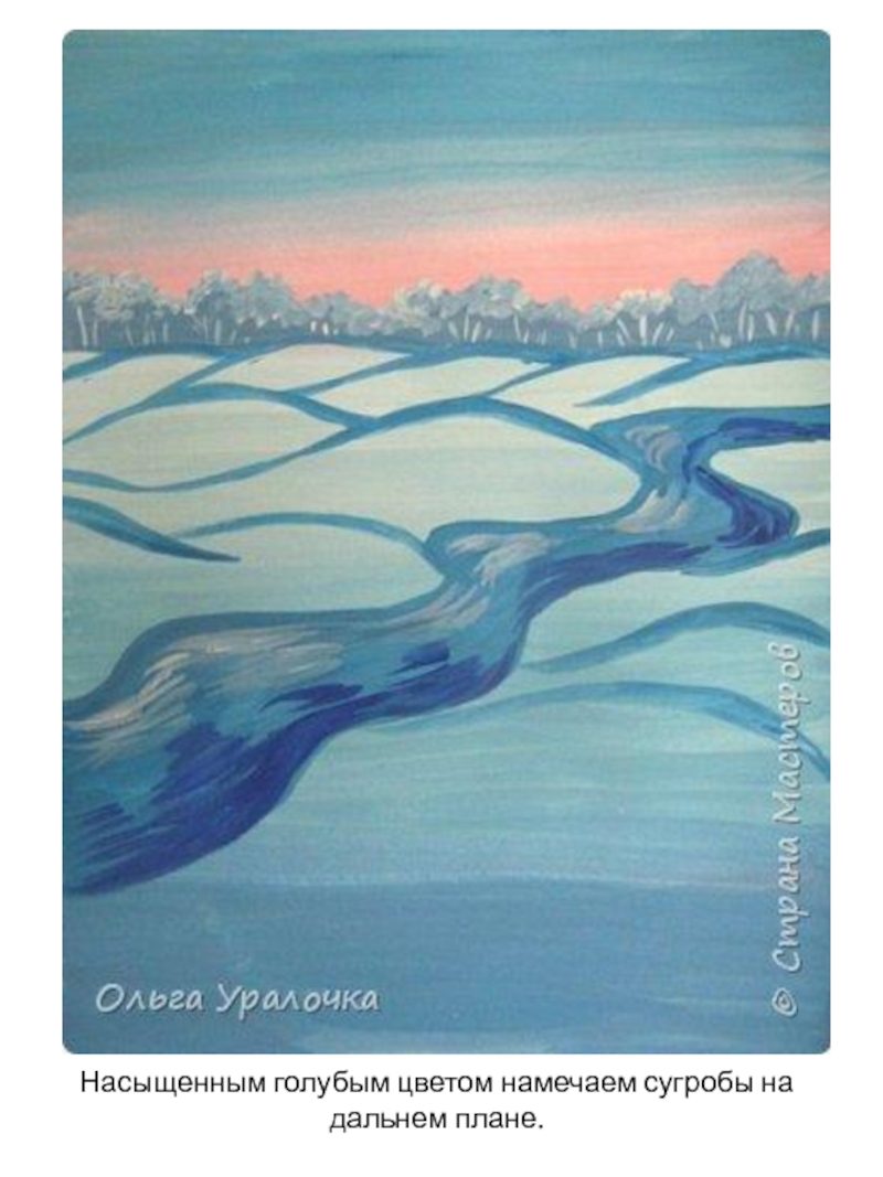 Насыщенным голубым цветом намечаем сугробы на дальнем плане.