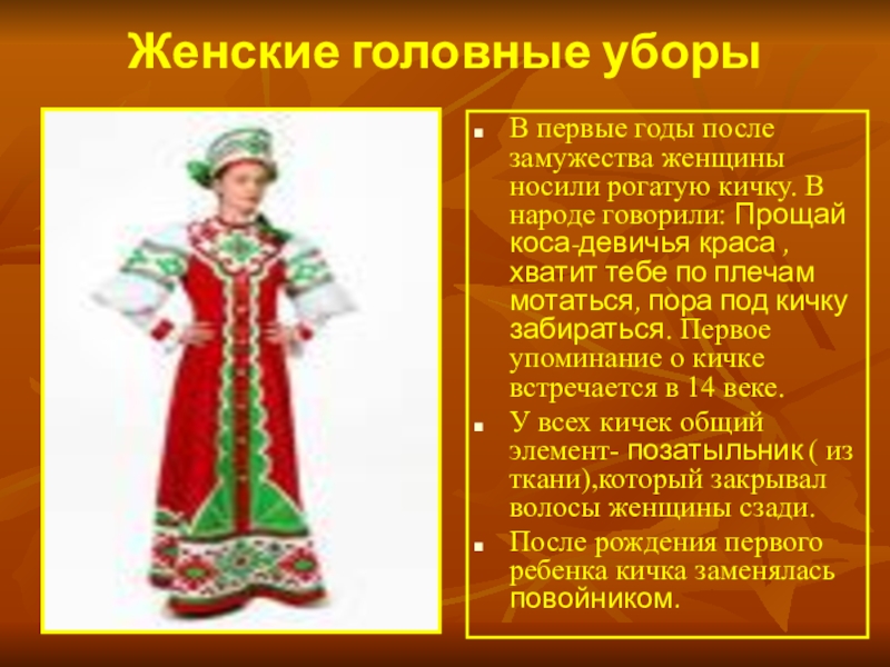 После рождения первого ребенка кичка заменялась повойником.