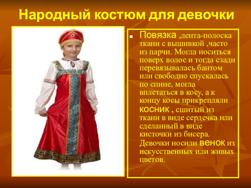 Слайд 21Народный костюм для девочки