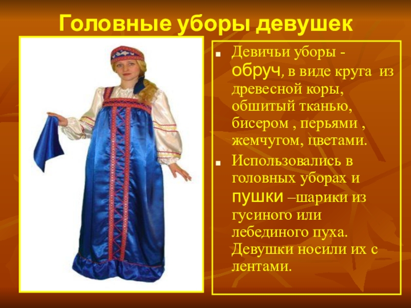 Слайд 13Головные уборы девушек