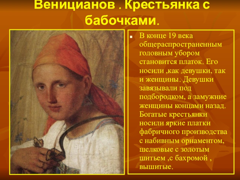 Слайд 23Веницианов . Крестьянка с бабочками.