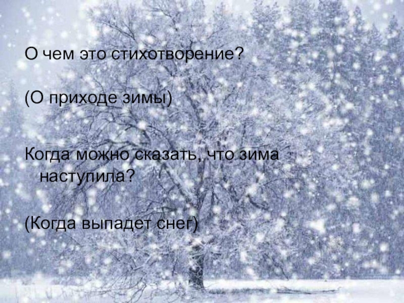 О чем это стихотворение?Когда можно сказать, что зима наступила?(О приходе зимы)(Когда выпадет снег)