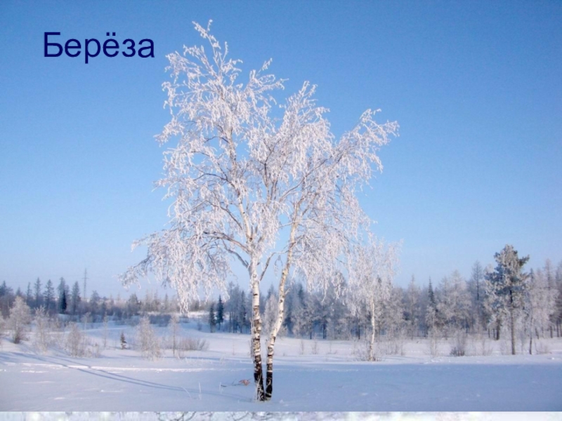 Слайд 4Белая береза Под моим окном Принакрылась снегом, Точно серебром. На пушистых ветках Снежною каймой Распустились кисти Белой бахромой. И