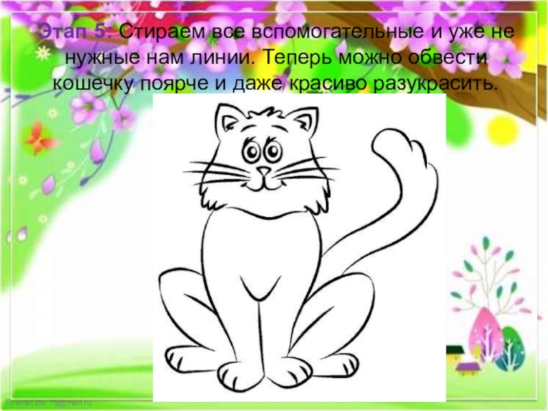 Этап 5: Стираем все вспомогательные и уже не нужные нам линии. Теперь можно обвести кошечку поярче и