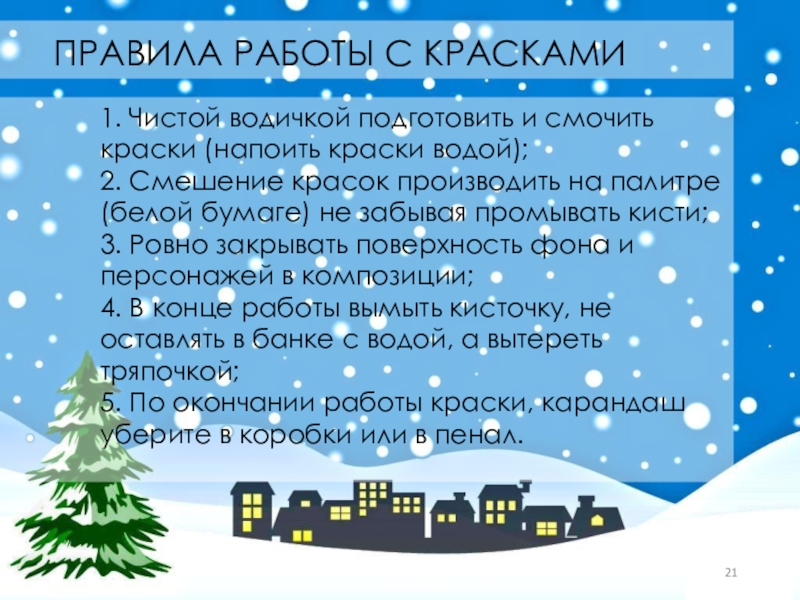 Слайд 21ПРАВИЛА РАБОТЫ С КРАСКАМИ