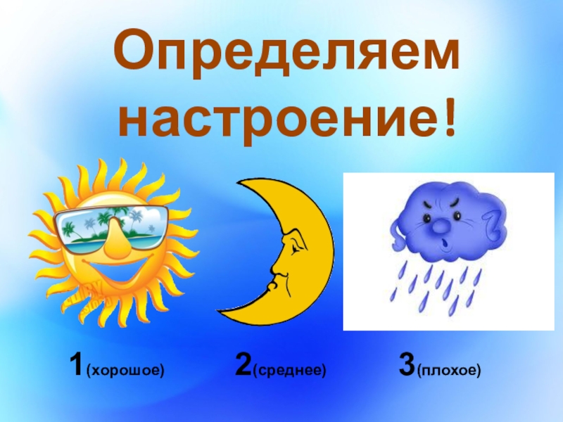 Определяем настроение!1(хорошое)        2(среднее)     3(плохое)