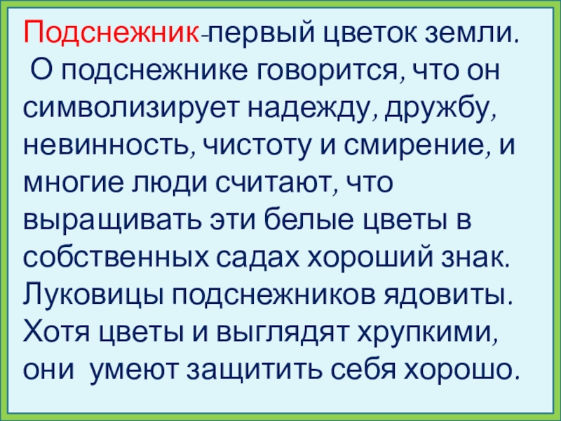 Луковицы подснежников ядовиты. Хотя цветы и выглядят хрупкими, они умеют защитить себя хорошо.