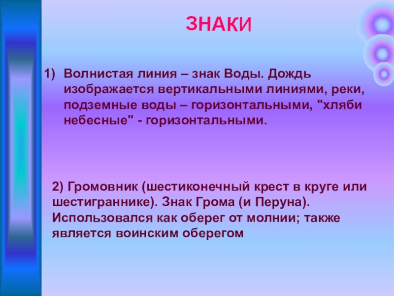 2) Громовник (шестиконечный крест в круге или шестиграннике). Знак Грома (и Перуна). Использовался как оберег от молнии; также является воинским оберегом