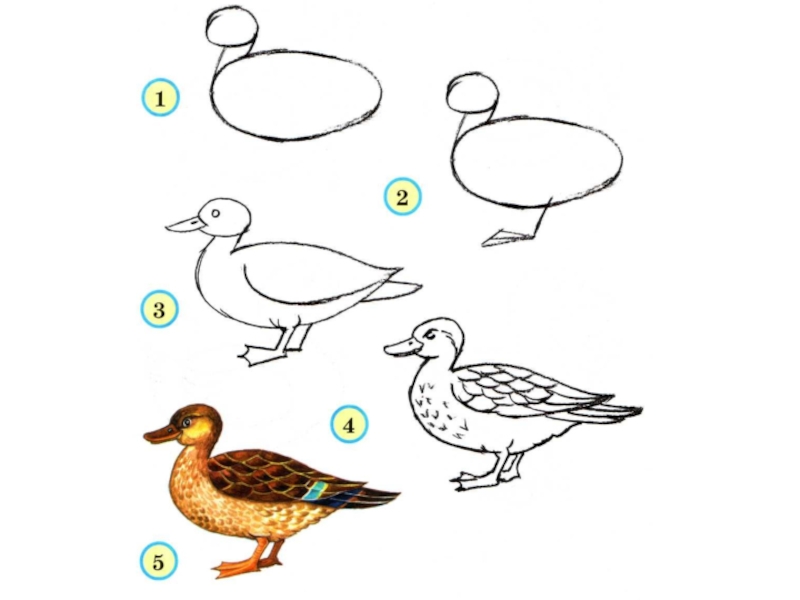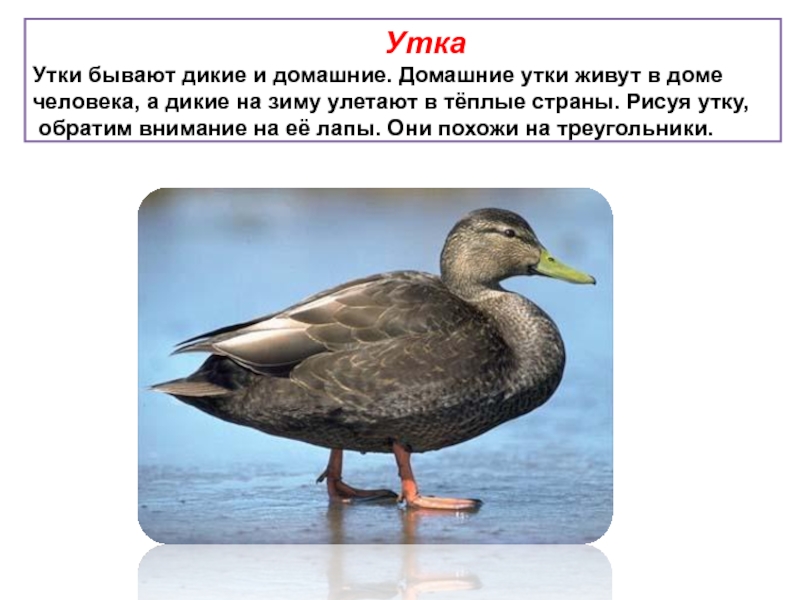 человека, а дикие на зиму улетают в тёплые страны. Рисуя утку,