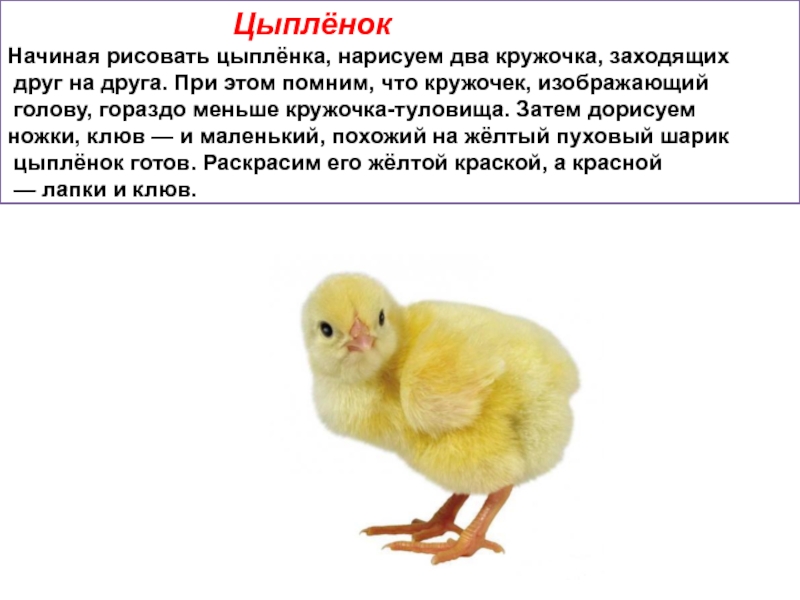 цветом раскрасить курицу? Какой у курицы клюв, лапы?