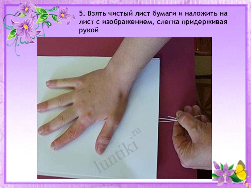 Слайд 455. Взять чистый лист бумаги и наложить на лист с изображением,