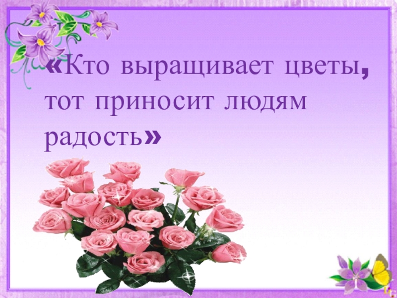 Слайд 29«Кто выращивает цветы, тот приносит людям радость»