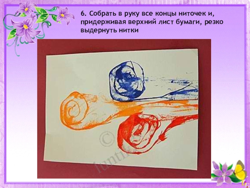 Слайд 466. Собрать в руку все концы ниточек и, придерживая верхний лист