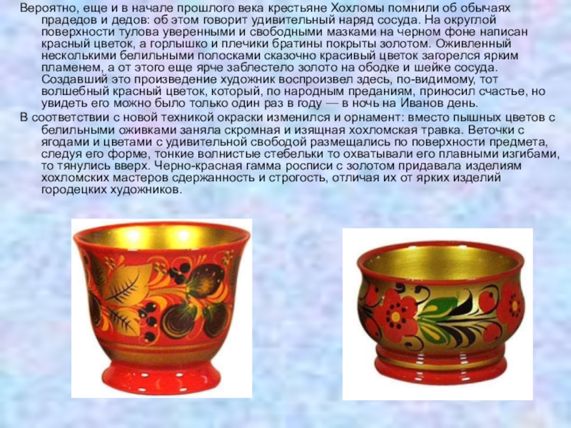 Вероятно, еще и в начале прошлого века крестьяне Хохломы помнили об