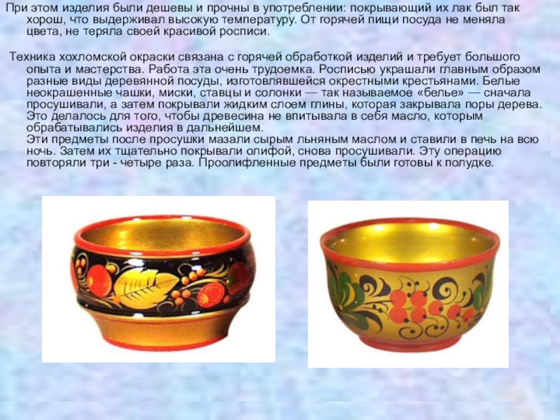Слайд 6При этом изделия были дешевы и прочны в употреблении: покрывающий их