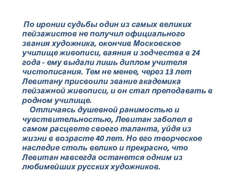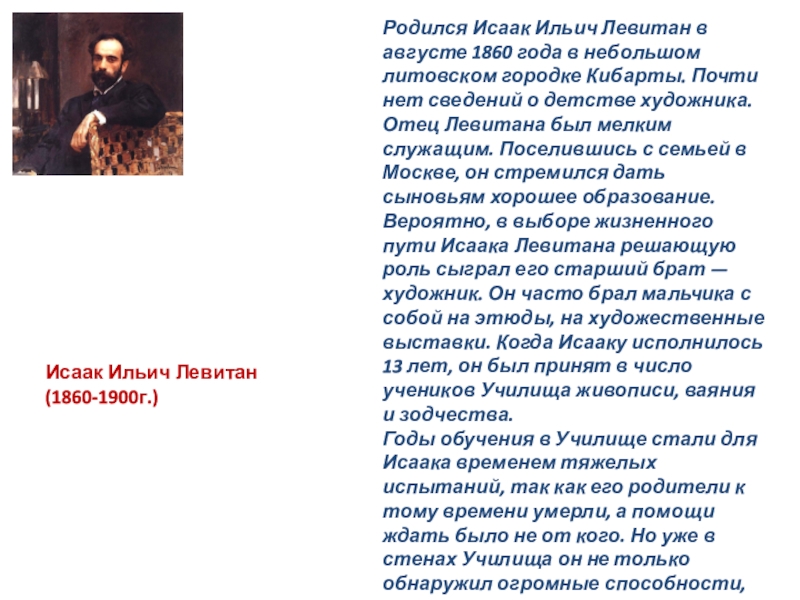 Исаак Ильич Левитан (1860-1900г.)