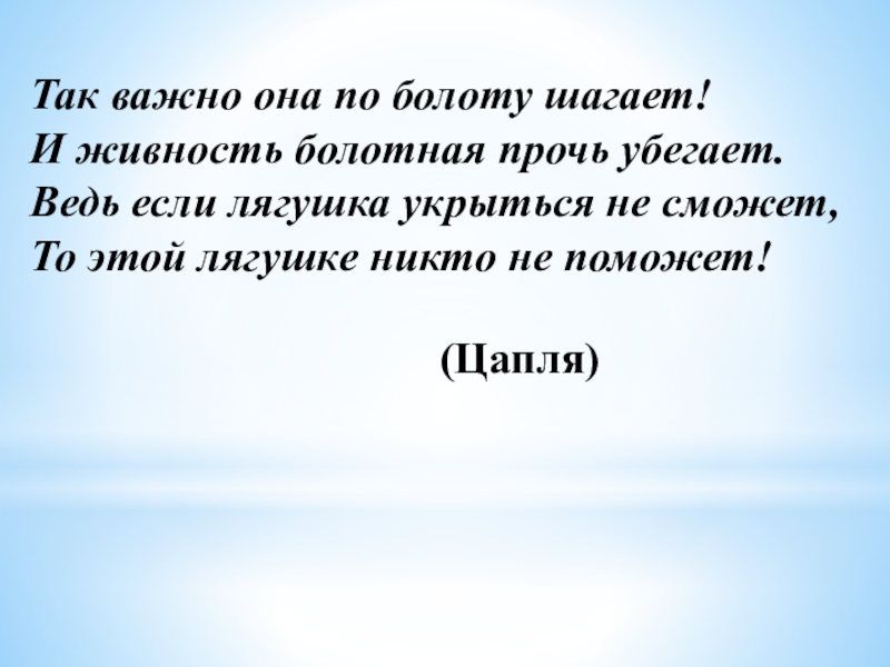 Слайд 5Так важно она по болоту шагает!