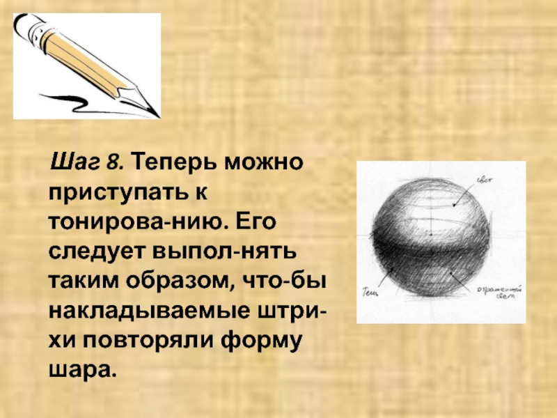выпол-нять таким образом, что-бы накладываемые штри-хи повторяли форму шара.