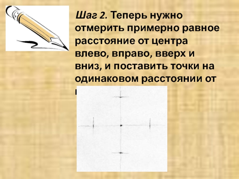Слайд 3 Шаг 2. Теперь нужно отмерить примерно равное расстояние от