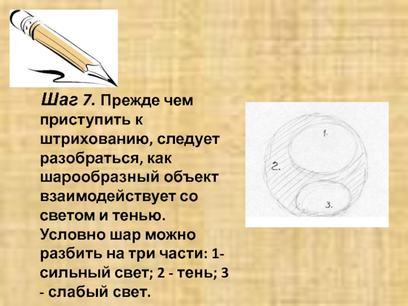 Слайд 7 Шаг 7. Прежде чем приступить к штрихованию, следует разобраться,