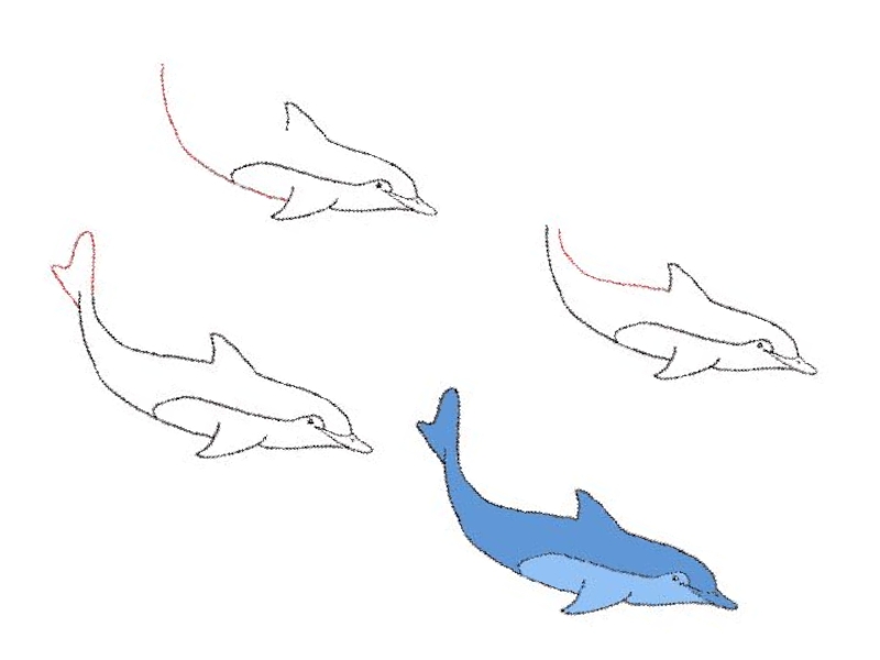 млекопитающие. Но они могут находиться под водой очень долго. Чтобы вдохнуть, дельфины поднимаются на поверхность. Они дышат через специальное отверстие на голове. Дельфины плавают, двигая вверх-вниз своим плоским хвостом.