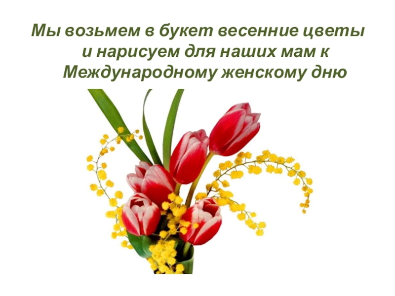 Слайд 15Мы возьмем в букет весенние цветы и нарисуем для наших мам