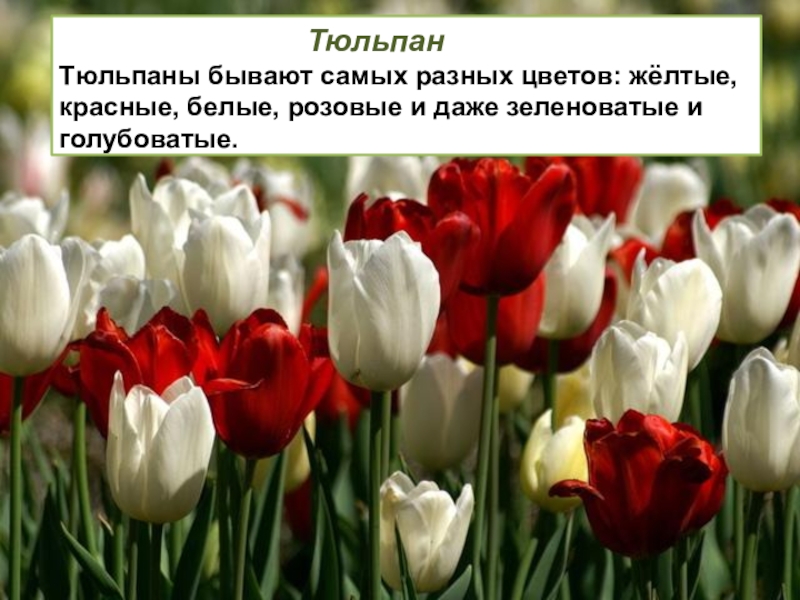 Тюльпаны бывают самых разных цветов: жёлтые,