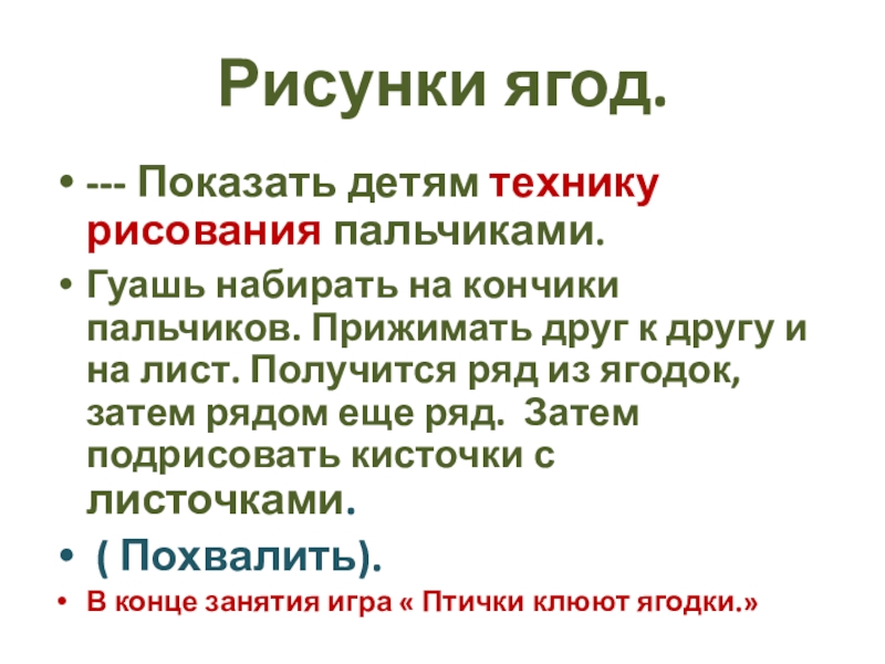 Презентация, доклад по изо. Тема Рисование ягод пальчиками. Гуашь.