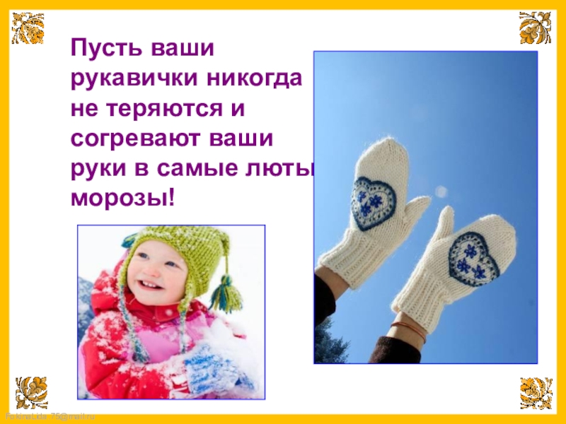 Слайд 12Пусть ваши рукавички никогда не теряются и согревают ваши руки в