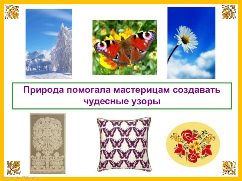 Слайд 3Природа помогала мастерицам создавать чудесные узоры