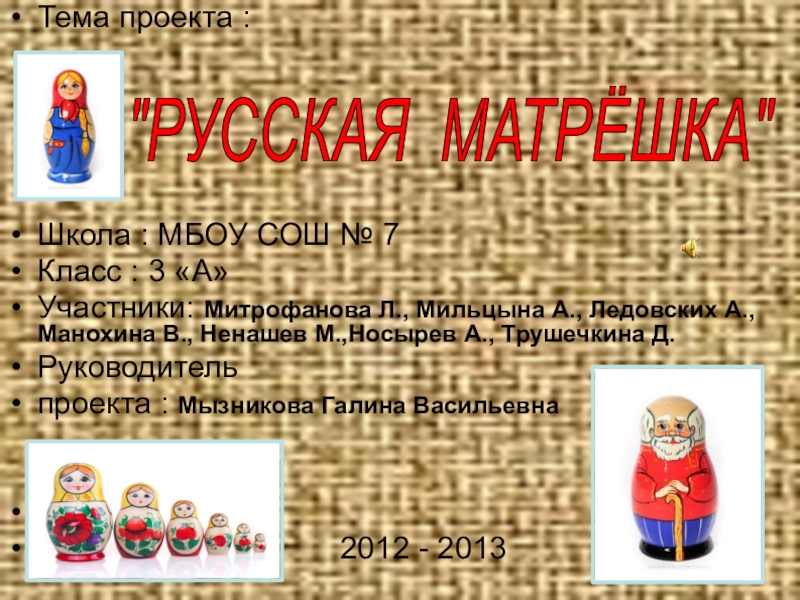 Участники: Митрофанова Л., Мильцына А., Ледовских А., Манохина В., Ненашев М.,Носырев А., Трушечкина Д.
