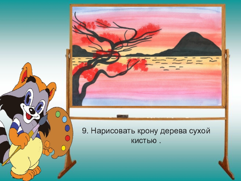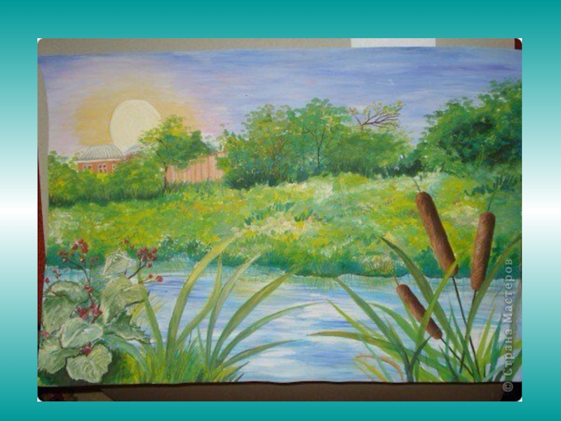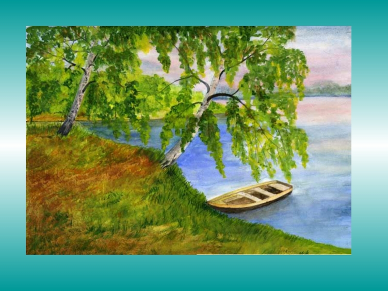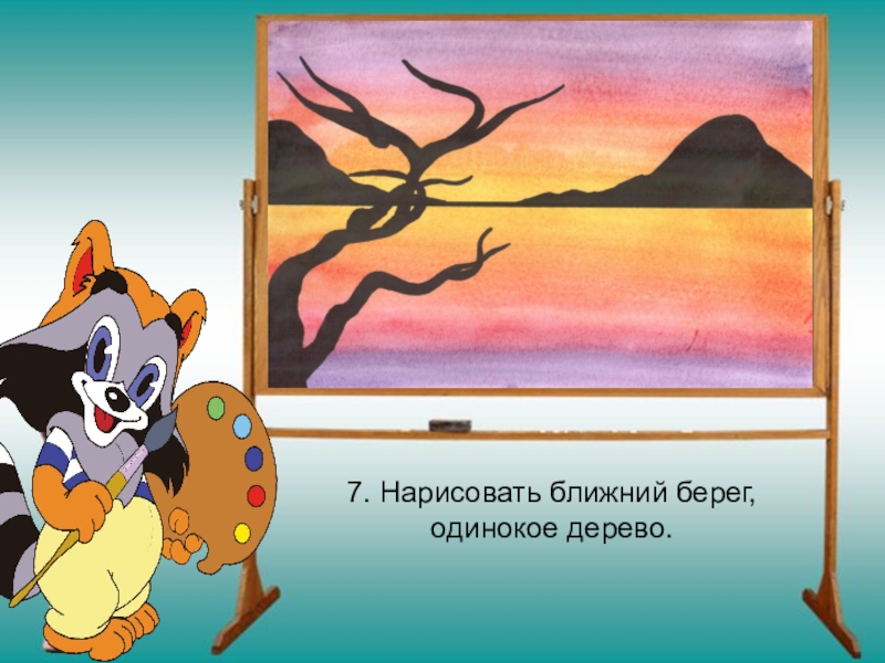 Слайд 297. Нарисовать ближний берег, одинокое дерево.