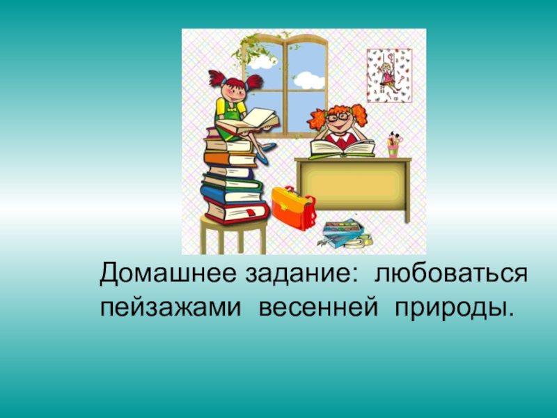 Слайд 34Домашнее задание: любоваться пейзажами весенней природы.