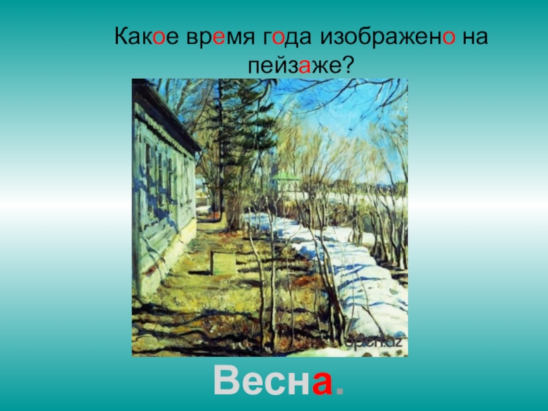 Слайд 11Какое время года изображено на пейзаже?