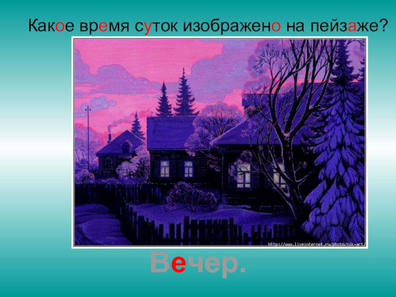 Слайд 12Какое время суток изображено на пейзаже?