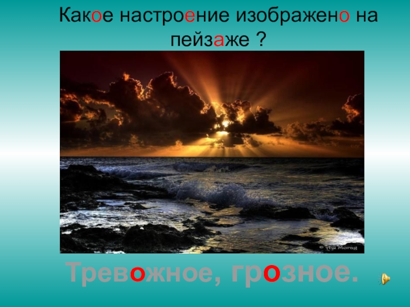 Слайд 14Какое настроение изображено на пейзаже ?