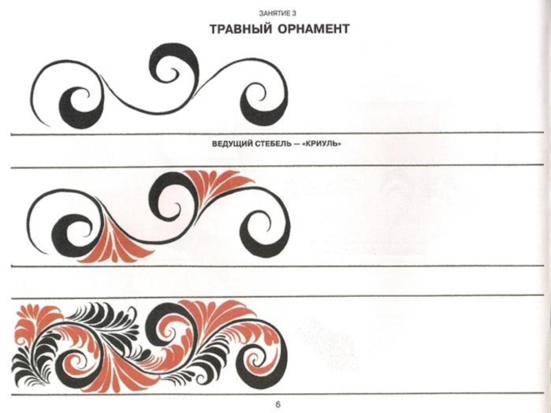 «травка» или «травинка» – традиционный травяной орнамент, наиболее характерный элемент; мазки с небольшим плавным утолщением и др.