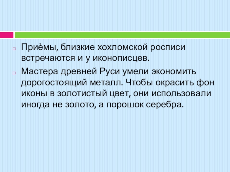 Слайд 4Приѐмы, близкие хохломской росписи встречаются и у иконописцев.