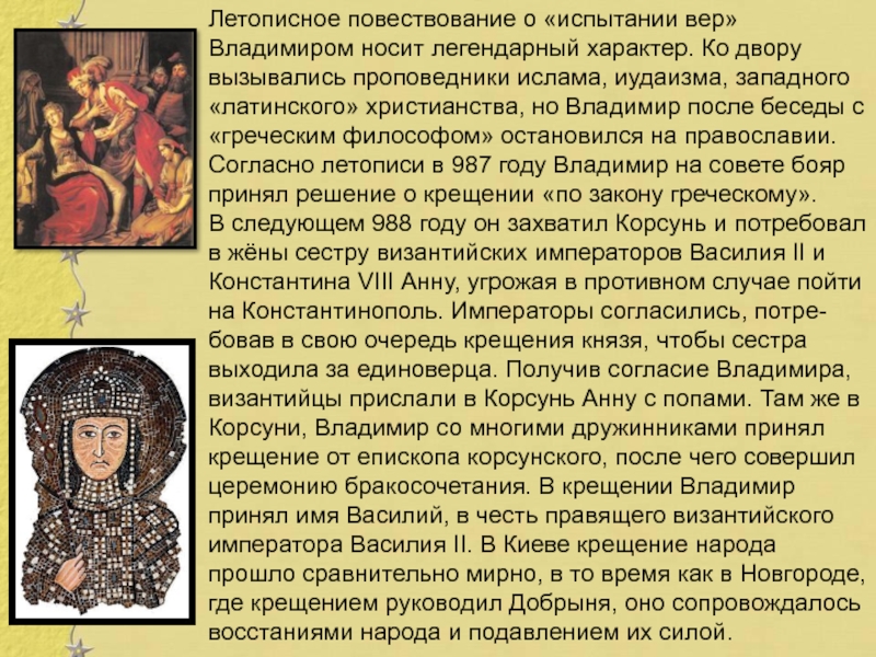 Тело Владимира положили в мраморный гроб и похоронили в построенной им первой на Руси каменной церкви Святой Богородицы. Удивления достойно, сколько добра сотворил он Русской земле,— сказал о нем летописец.
