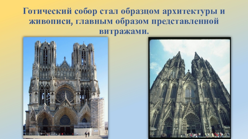 Слайд 3Готический собор стал образцом архитектуры и живописи, главным образом представленной витражами.