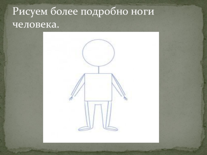 Слайд 12От нижних углов прямоугольника проводим линии вниз. Это будут ноги.