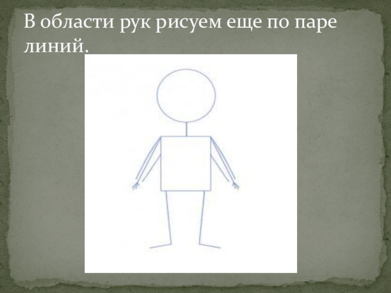Слайд 13Проводим линии от верхних углов. Это будут руки.