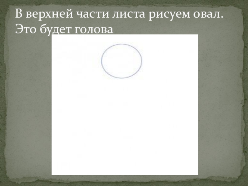 Слайд 10В верхней части листа рисуем овал. Это будет голова
