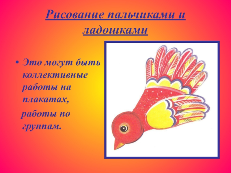 Рисование пальчиками и ладошками Это могут быть коллективные работы на плакатах,  работы по группам.